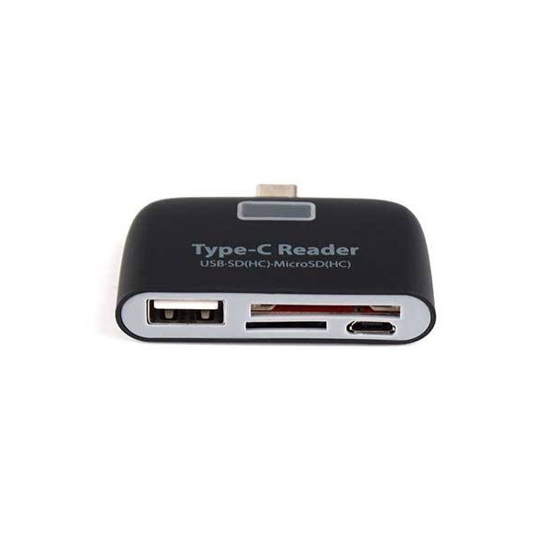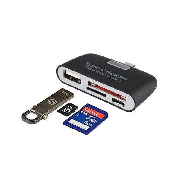 این محصول یک تبدیل می باشد که با اتصال آن به درگاه تایپ سی به شما یک رم ریدر با قابلیت اتصال رم میکرو و SD می دهد که از پر کابرد ترین نوع رم ها می باشد و علاوه بر آن یک خروجی USB که به شما امکان اتصال فلش مموری و کیبرد و موس را در اختیار شما قرار می دهد و همچنین یک درگاه تایپ سی جهت اتصال به کامپیوتر نیز در اختیار شما قرار می دهد.