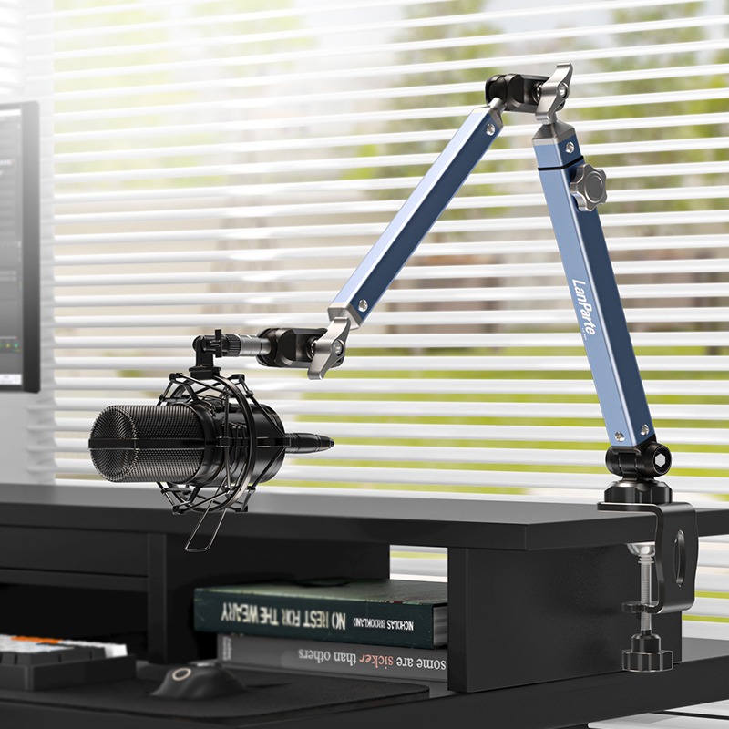 یک پایه میکروفون چندکاره (Multifunctional Desktop Boom Arm) به شما امکان میدهد میکروفون را به صورت منعطف در اطراف میز قرار دهید، بدون اینکه پایهای بزرگ روی میز اشغال کند.