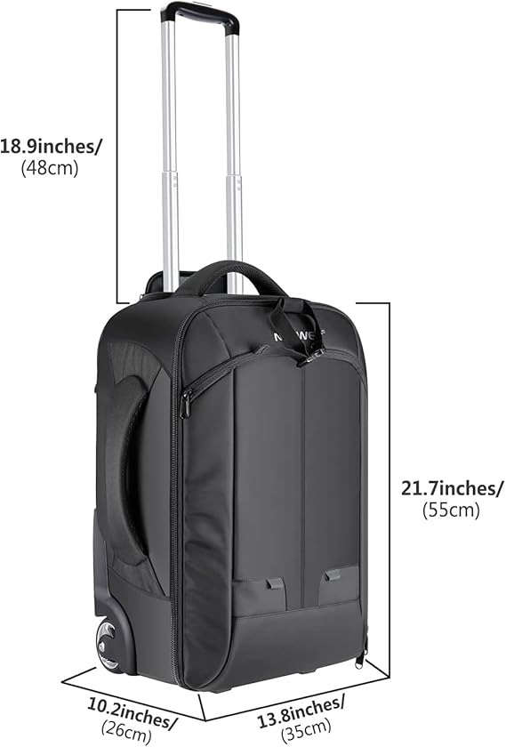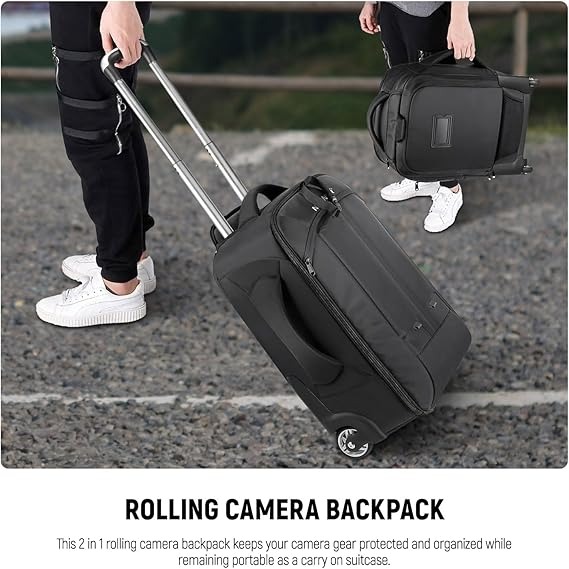 • این کوله پشتی چرخدار دوربین ۲ در ۱ می‌تواند تجهیزات دوربین شما را محافظت و سازماندهی کند و در عین حال به عنوان یک چمدان دستی قابل حمل باقی بماند.