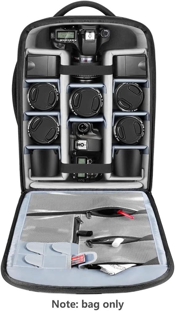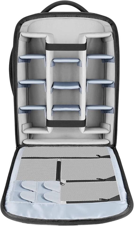 ۱۱ جداکننده قابل تنظیم، دوربین‌های DSLR، لنزها، هودها و فلاش‌های استروب را در مکان‌های مختلف محکم می‌کنند. ۴ جیب کوچک و ۴ جیب توری، کارت‌های SD، باتری‌ها، کابل‌ها، شارژرها، فیلترها و سایر لوازم جانبی شما را در خود جای می‌دهند. جیب جلویی می‌تواند یک لپ‌تاپ تا ۱۷ اینچ را در خود جای دهد و بند جلویی، سه‌پایه شما را محکم می‌بندد.