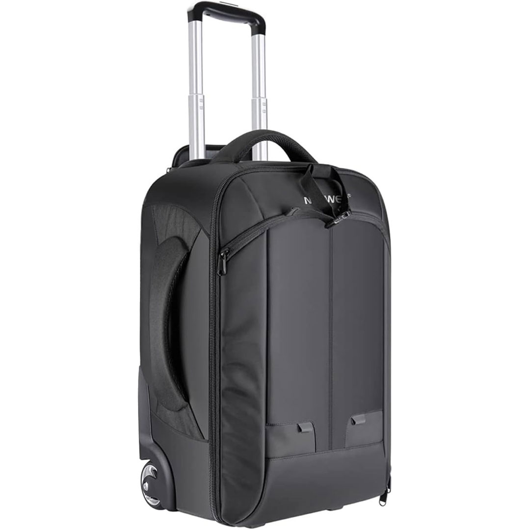• بندهای شانه‌ای فومی راحت هستند و دو دسته کوله پشتی به شما امکان می‌دهند کیف را به راحتی بگیرید. دسته تلسکوپی قابل افزایش و چرخ‌های روان، حمل و نقل آسان را ممکن می‌سازند.