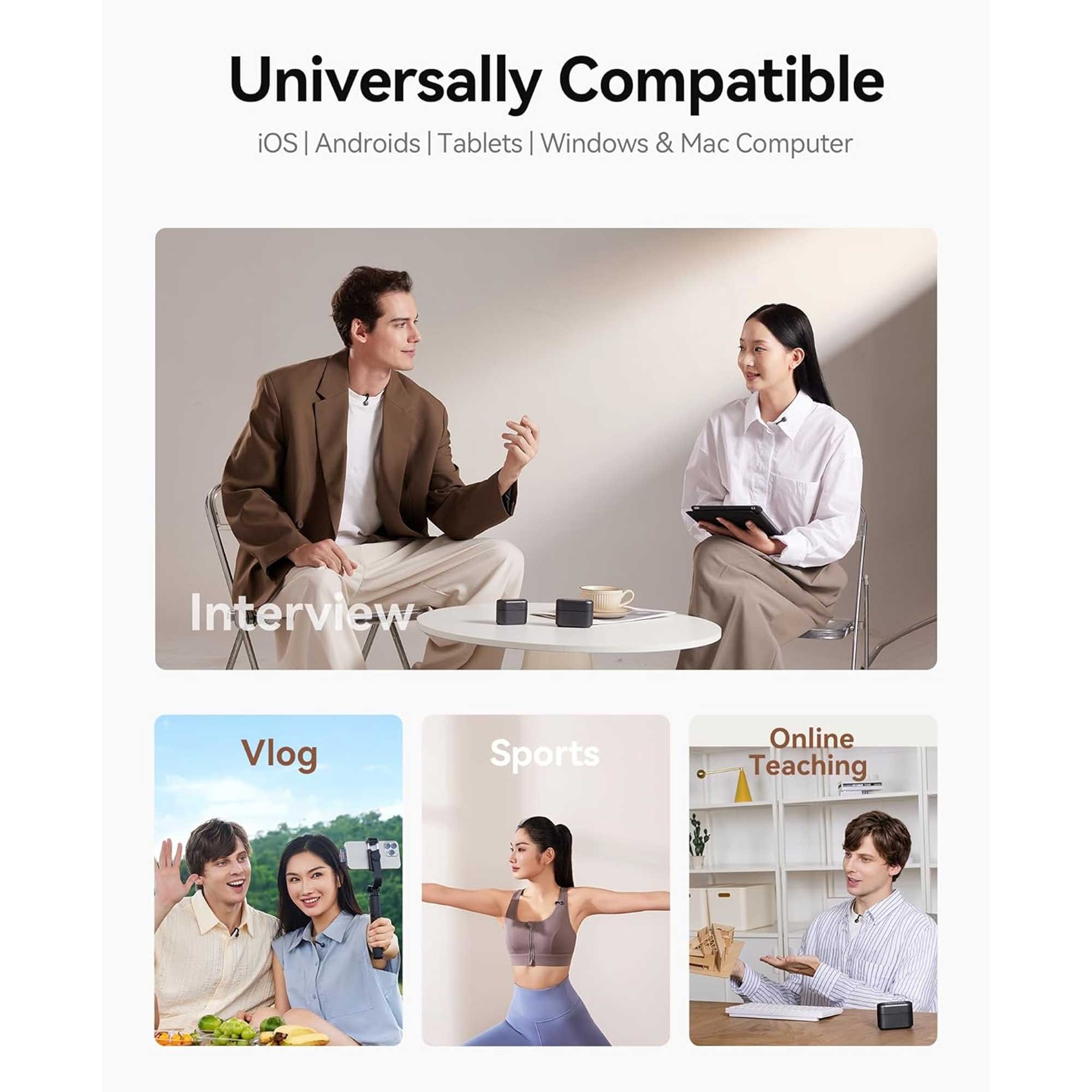 این میکروفون از الگوی قطبی Omni-Directional استفاده میکنه که باعث میشه صداها از تمام جهات به خوبی ضبط بشن. رابط اتصال این میکروفون Type-C و جک ۳.۵ میلیمتریه و محدوده عملکردش تا ۳۰۰ متره. فرکانس پاسخگوییش بین ۲۰ تا ۲۰۰۰۰ هرتزه و حساسیتش هم ۲ ± ۳۷- دسیبله. نسبت سیگنال به نویز (SNR) این میکروفون ۷۰ دسیبله و SPL هم ۱۱۶ دسیبله که باعث میشه بتونه صداهای بلند رو هم بدون مشکل ضبط کنه.