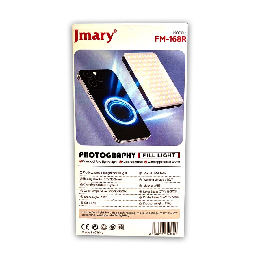 نور ثابت جی ماری مدل FM-168R، محصولی پیشرفته از برند Jmary، یک فیل لایت مغناطیسی قابل حمل با ۱۶۰ LED است که برای تولیدکنندگان محتوا طراحی شده. این نور با قابلیت تنظیم دمای رنگ از ۲۵۰۰K تا ۹۰۰۰K، گزینهای ایدهآل برای ویدیوهای موبایل و عکاسی است. بر اساس آمارهای دیجیکالا مگ، بیش از ۶۰ درصد تولیدکنندگان محتوا در ایران از نورهای ثابت برای بهبود کیفیت استفاده میکنند. با باتری ۳۰۰۰ میلیآمپرساعتی و وزن تنها ۱۱۷ گرم، این مدل برای استفاده روزمره و سفرها عالی است.توان خروجی 10 وات