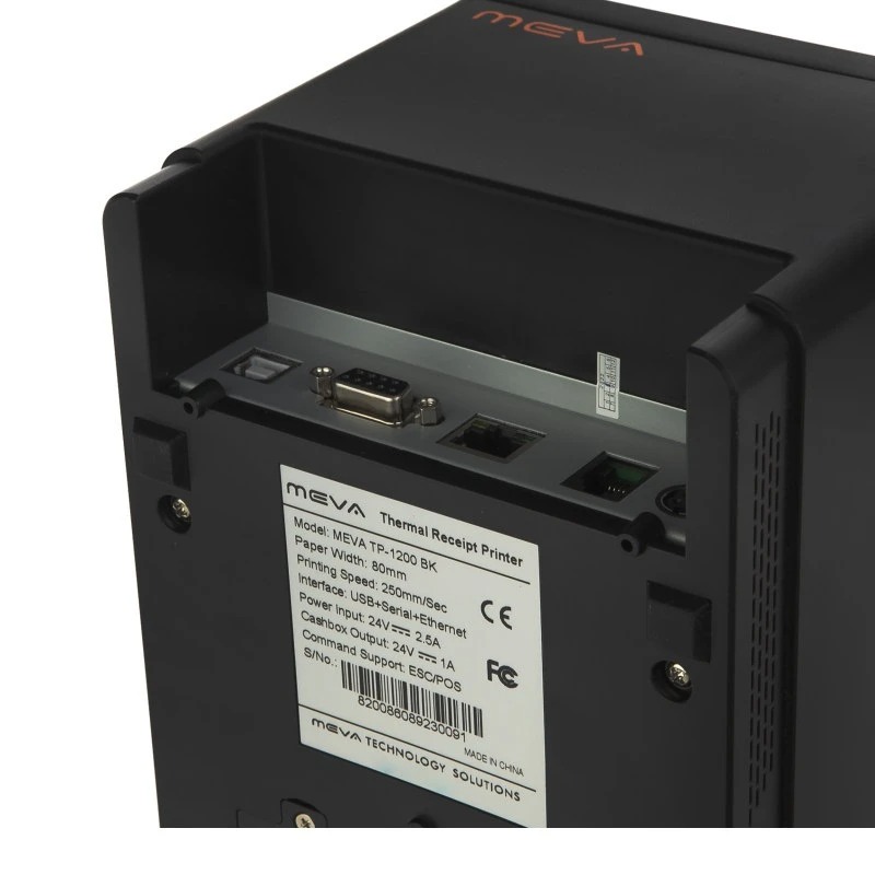 پرینتر صدور فیش Meva TP-1200 دارای پورت اتصال به کشوی پول و همچنین سه پورت برای ارتباط با کامپیوتر بوده از پورت های زیر استفاده میکند: