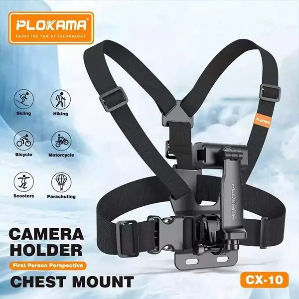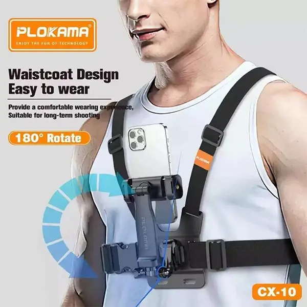 با استفاده از پایه نگهدارنده گوشی PLOKAMA CX10 روی قفسه سینه ، ماجراجوییهای خود را به راحتی ثبت کنید. این پایه نگهدارنده گوشی برای وبلاگنویسان، دوچرخهسواران، موتورسواران، کوهنوردان و تولیدکنندگان محتوا، بهترین گزینه برای استفاده بدون دخالت دست است . این پایه نگهدارنده محکم و قابل تنظیم، گوشی هوشمند یا دوربین اکشن شما را به طور ایمن روی سینه شما نگه میدارد و ضبطهای پویا از نقطه نظر (POV) را ارائه میدهد.