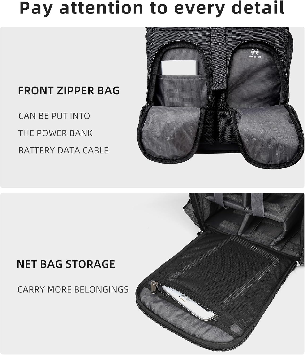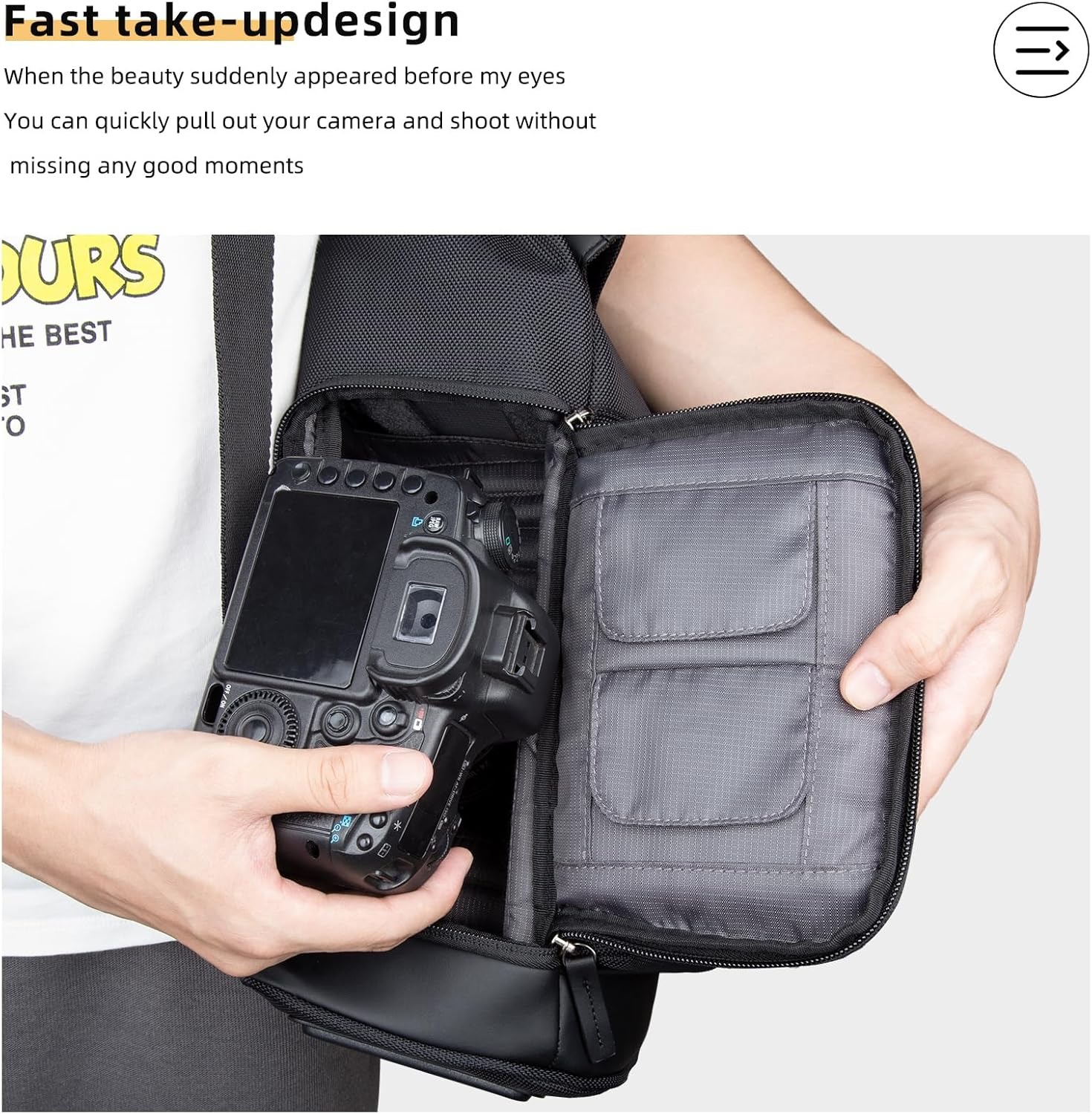 ⑥ طراحی دسترسی سریع در کنار کیف دوربین، وقتی مناظر زیبا ناگهان جلوی شما ظاهر میشوند، میتوانید به سرعت دوربین را برای عکاسی بیرون بیاورید، هیچ لحظه شگفتانگیزی را از دست ندهید؛⑦ جیب زیپدار جلو، میتوانید شارژ، باتری، کابل داده را در آن قرار دهید؛⑧ جیب توری داخلی مقرونبهصرفه برای سازماندهی وسایل بیشتر؛⑨ دسته حمل راحت، چسبندگی ضخیم و حس راحتی در دست؛⑩ کف ضد لغزش و ضد سایش، بهطور مؤثر از بدنه کیف محافظت میکند.